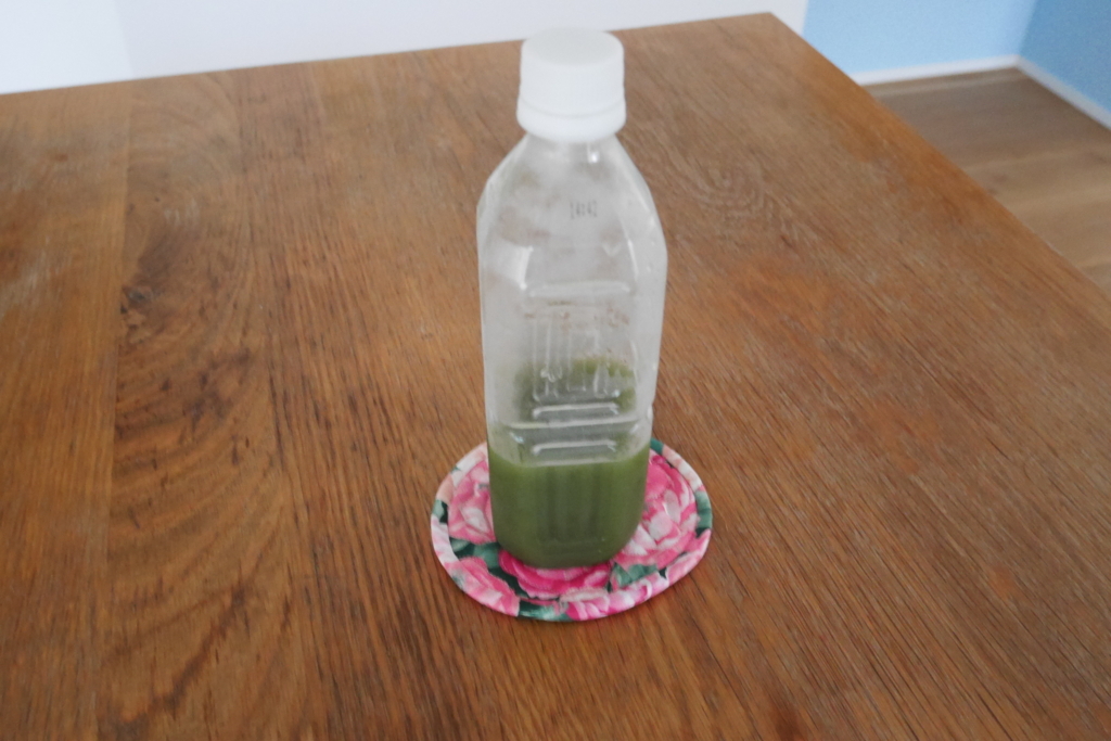 当初はジューサーのボトルで作って飲んでたんですけど、ペットボトルの方が使い勝手が良いです。